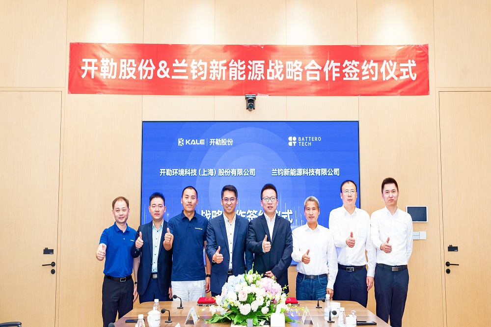 10月10日10时,兰钧新能源科技有限公司与开勒环境科技(上海)股份有限公司在开勒科技产业园正式签署战略合作协议。永青科技董事长胡晓东、兰钧新能源董事长张五堂与开勒股份董事长卢小波、安瑞哲能源总经理张登基等相关领导出席本次签约仪式,并与双方代表一起进行深度交流。