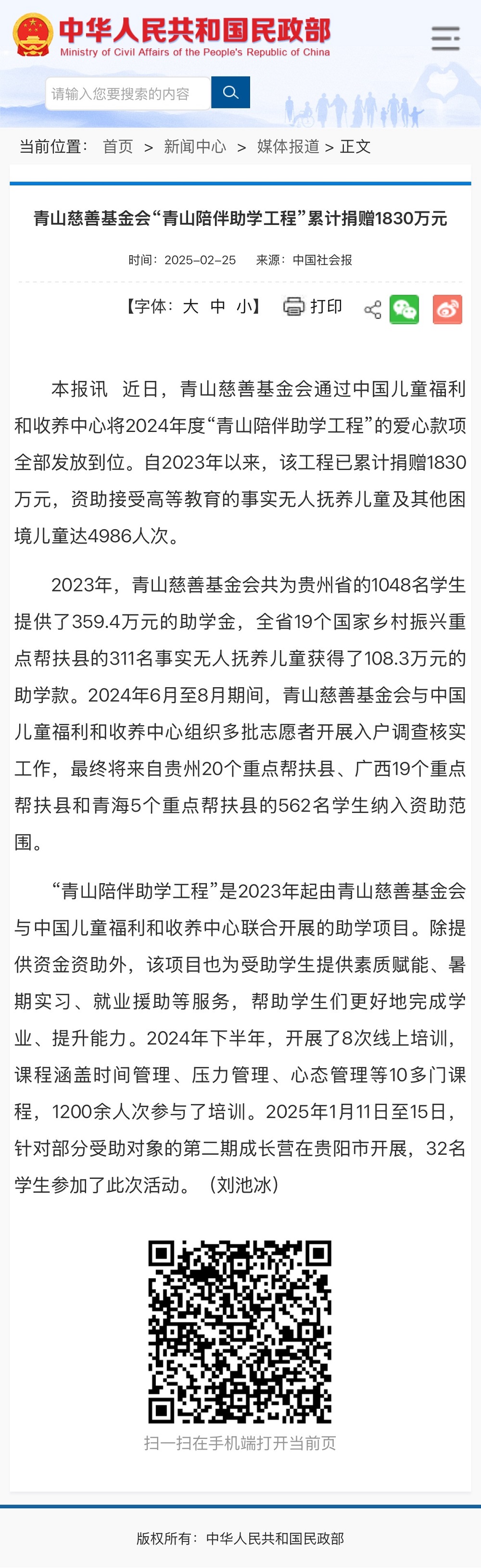 (来源于2025年2月25日民政部官网《中国社会报》头版新闻)