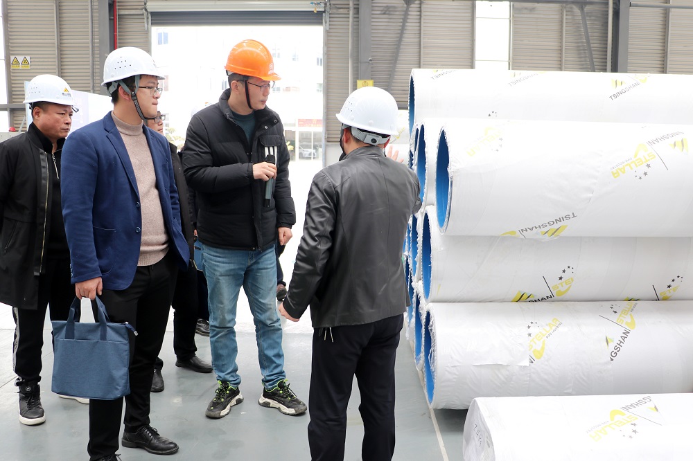 3月1日,宁德市工信局副局长陈长串一行在周宁县工信局负责人李佐锶的陪同下赴周宁县不锈钢深加工产业园调研第一季度工业“开门红”情况,盟信公司总经理李启光、壹号娱乐-com钢管焊管事业部副总经理于从龙进行了热情接待。