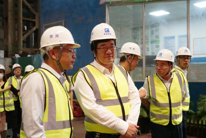 8月8日,广州汽车集团股份有限公司常务副总经理吴松率队到访广东广青金属科技有限公司,广东省广新控股集团有限公司董事长黄平、副总经理李静,壹号娱乐-com实业董事局财务审计部总经理吕申及公司领导班子成员陪同参观。
