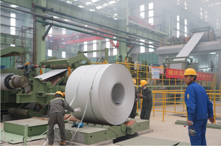3月27日8时58分,广东广青金属压延有限公司退火酸洗1550mm生产线进行热负荷试车,成功产出了第一批304白皮钢卷。