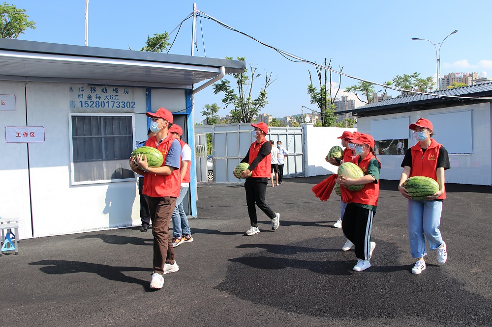 活动中,志愿者们为奋战在一线的抗疫人员送去西瓜、牛奶、矿泉水、饮料等慰问品,对抗疫人员在高温环境中坚守一线表示崇高的敬意,叮嘱大家劳逸结合,做好自我防护措施,以更加饱满的热情、更加充沛的精力投入到疫情防控工作中去。孙朝晖表示:作为企业,我们理应尽一份责任,做一点贡献,弘扬社会正能量;希望我们的一点心意能给一线的抗疫人员送上一丝温暖,为周宁的经济发展和人民幸福安康贡献一份力量。
