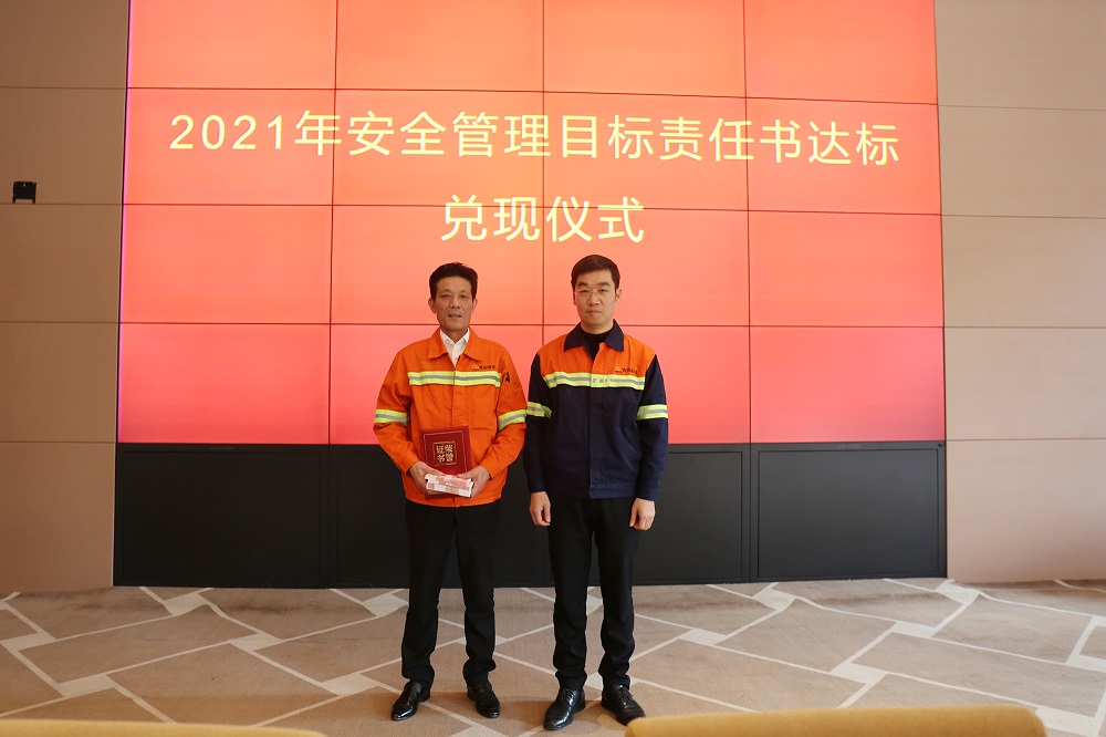 姜海洪为2021年度安全管理目标达标的9个单位进行了颁奖,并与集团直属部门、各子公司签订了2022年安全管理目标责任书。