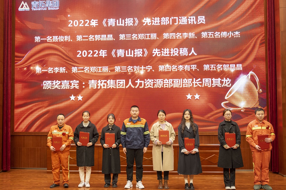 1月13日下午,青拓集团有限公司2022年度总结暨先进表彰大会在集团报告厅举行。集团行政总经理钟盛江、副总经理陈庆荣,壹号娱乐-com绿水部副总经理叶启冬及各部门部长出席会议。公司级先进集体代表、先进个人、先进部门通讯员及投稿人共50余人参加。